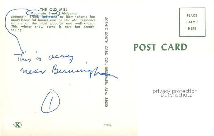 72956941 Mountain Brook The Old Mill winter snow scene postalisch nicht gelaufen Erhaltung siehe scans [FriedD77] KatCode: 14140010000000