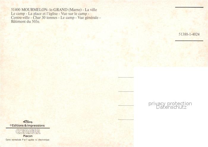 13593810 Mourmelon-le-Grand La Ville Le camp La place et l’eglise Char 30 tonnes Vue generale Batiment du 503e KatCode 11170051151388