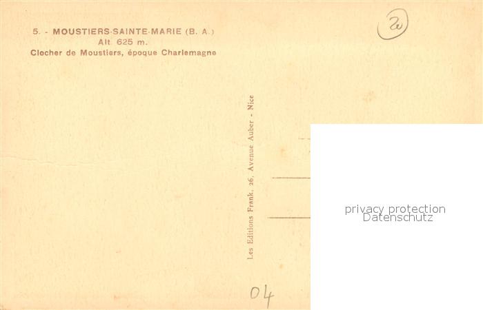 13490916 Moustiers-Sainte-Marie Clocher de Moustiers epoque Charlemagne postalisch nicht gelaufen Erhaltung siehe scans [WerneD78] KatCode: 11170004304135