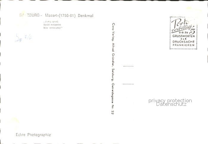 Mozart Wolfgang Amadeus Denkmal Salzburg postalisch nicht gelaufen Erhaltung siehe scans