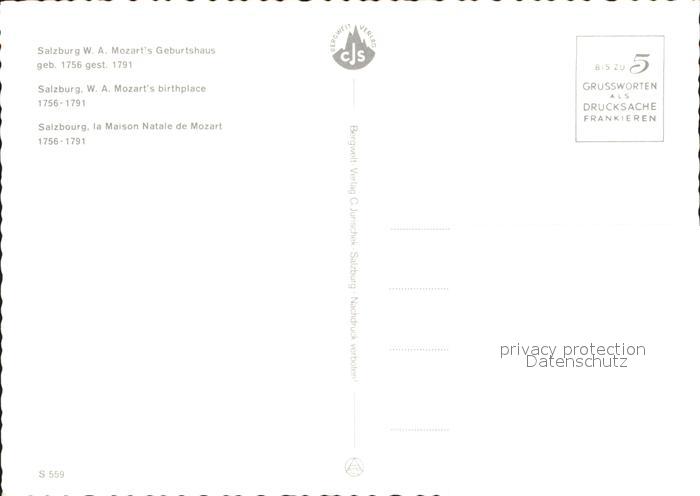 Mozart Wolfgang Amadeus Geburtshaus Salzburg postalisch nicht gelaufen Erhaltung siehe scans