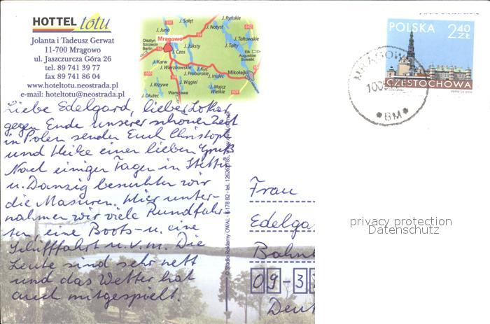 old postcard Mragowo Sensburg Hottel totu Zimmer Gastraum Bar Terrasse postalisch gelaufen Erhaltung siehe scans
