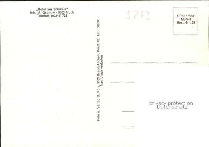 41607292 Much Hotel zur Schweiz M. Grunow postalisch nicht gelaufen Erhaltung siehe scans KatCode: 11110005382036