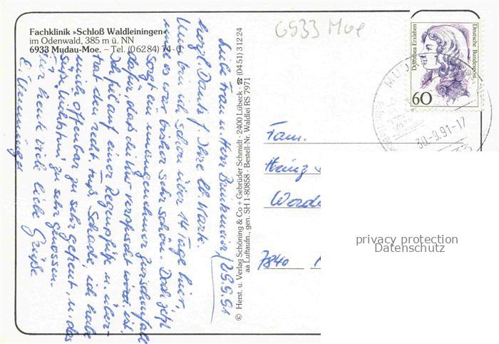 74047641 alte Postkarte Mudau Fachklinik Schloss Waldleiningen Fliegeraufnahme postalisch gelaufen Erhaltung siehe scans [WerneD78] KatCode: 11110008225060