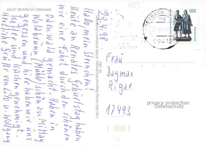 74047760 alte Postkarte Mudau Panorama Strassenpartie Huette Park postalisch gelaufen Erhaltung siehe scans [WerneD78] KatCode: 11110008225060