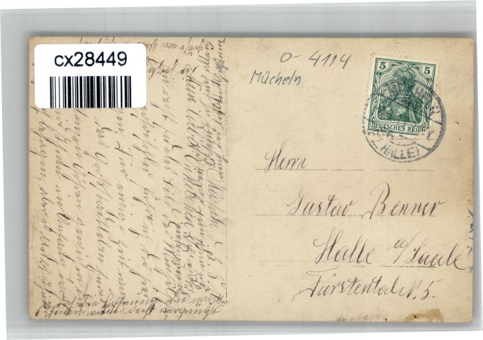 30910488 alte Postkarte Muecheln Sachsen-Anhalt Muecheln [Stempelabschlag] Bez. Halle postalisch gelaufen KatCode: 11110015088235