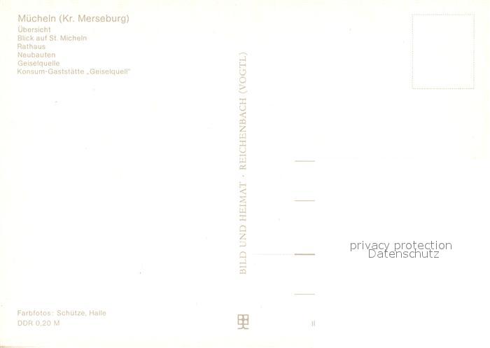 73653708 Muecheln Sachsen-Anhalt uebersicht St. Micheln Rathaus Neubauten Geielquelle Konsum Gaststaette Geiselquell postalisch nicht gelaufen Erhaltung siehe scans [FriedD77] KatCode: 11110015088235