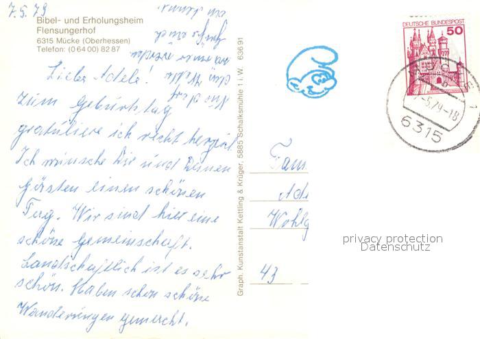 73211704 alte Postkarte Muecke Bibel Erholungsheim Flensungerhof postalisch gelaufen Erhaltung siehe scans [WerneD78] KatCode: 11110006535013