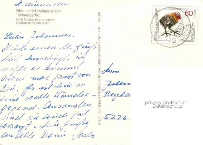 72680720 alte Postkarte Muecke Bibel und Erholungsheim Flensungerhof postalisch gelaufen Erhaltung siehe scans [WerneD78] KatCode: 11110006535013