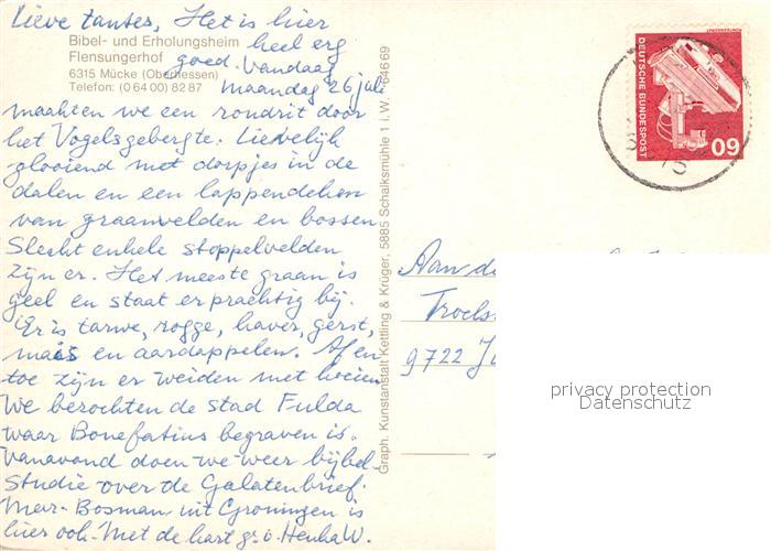 72953218 alte Postkarte Muecke Bibel- und Erholungsheim Flensungerhof postalisch gelaufen Erhaltung siehe scans [FriedD77] KatCode: 11110006535013