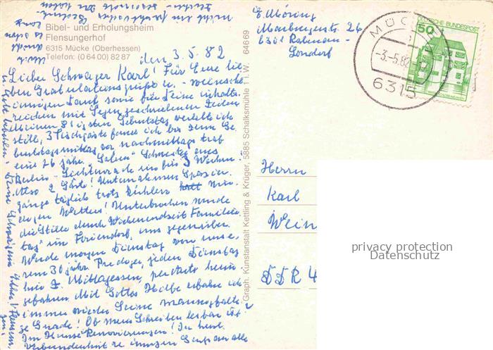74026248 alte Postkarte Muecke-Flensungen Bibel- und Erholungsheim Flensungerhof postalisch gelaufen Erhaltung siehe scans [FriedD77] KatCode: 11110006535013