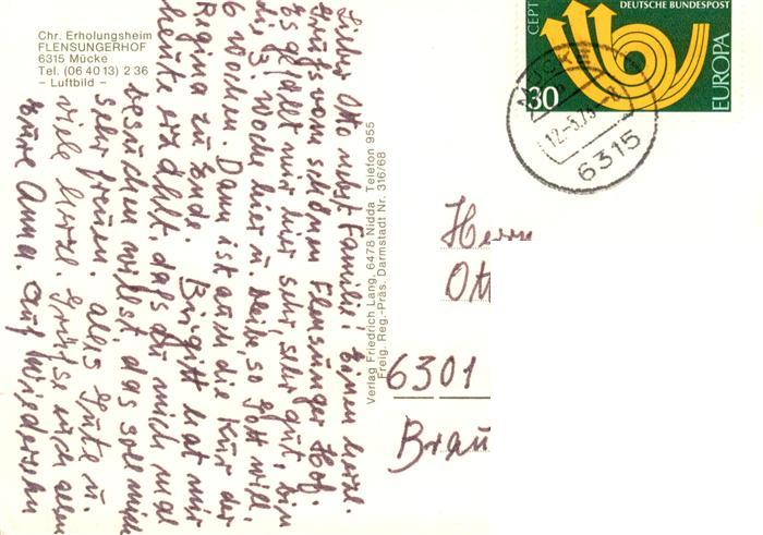 73876100 alte Postkarte Muecke-Flensungen Christl Erholungsheim Flensungerhof Fliegeraufnahme postalisch gelaufen Erhaltung siehe scans [WerneD78] KatCode: 11110006535013