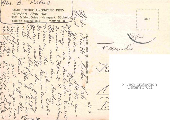 72823947 alte Postkarte Mueden oertze Familienerholungswerk DBSV Hermann Loens Hof Naturpark Suedheide postalisch gelaufen Erhaltung siehe scans [FriedD77] KatCode: 11110003351010