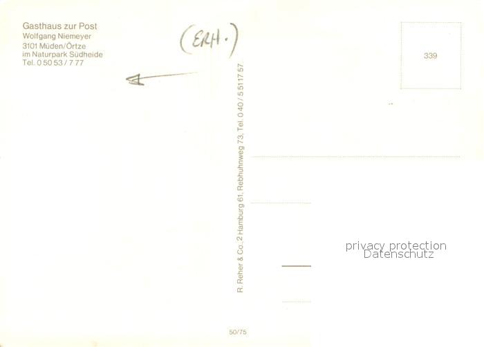 73653584 Mueden oertze Gasthaus zur Post Pferdewagen Park postalisch nicht gelaufen Erhaltung siehe scans [WerneD78] KatCode: 11110003351010