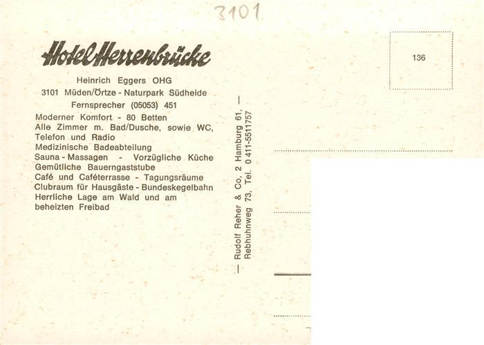 73894588 Mueden oertze Hotel Herrenbruecke Freibad Kegelbahn Park postalisch nicht gelaufen Erhaltung siehe scans [WerneD78] KatCode: 11110003351010