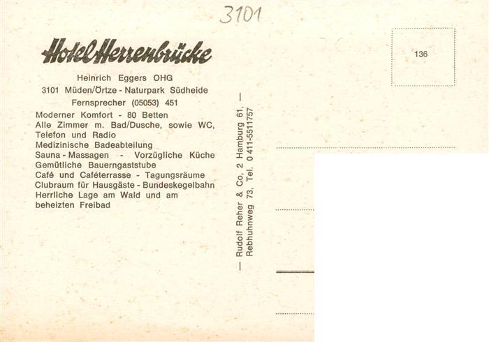 73894589 Mueden oertze Hotel Herrenbruecke Freibad Kegelbahn Park postalisch nicht gelaufen Erhaltung siehe scans [WerneD78] KatCode: 11110003351010