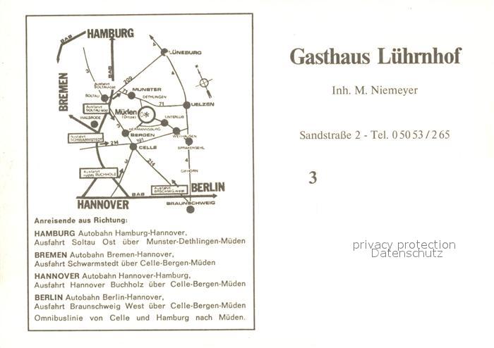 73323246 Mueden oertze Hotel Restaurant Luehrnhof Terrasse postalisch nicht gelaufen Werbekarte (keine Postkarte) Erhaltung siehe scans [FriedD77] KatCode: 11110003351010