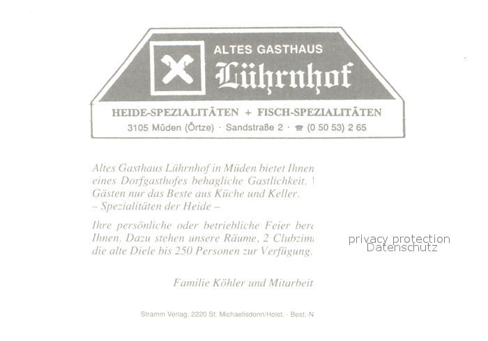 73323248 Mueden oertze Hotel Restaurant Luehrnhof Terrasse postalisch nicht gelaufen Werbekarte (keine Postkarte) Erhaltung siehe scans [FriedD77] KatCode: 11110003351010
