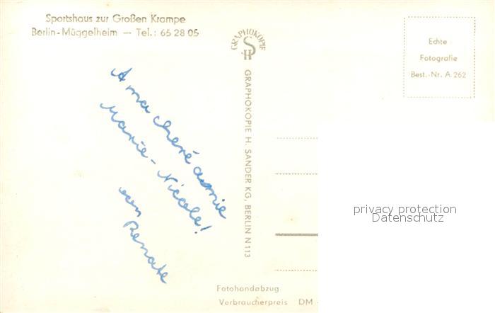 72966620 Mueggelheim Berlin Sportshaus zur Grossen Krampe Dahme Bucht postalisch nicht gelaufen Erhaltung siehe scans [FriedD77] KatCode: 11110011000000