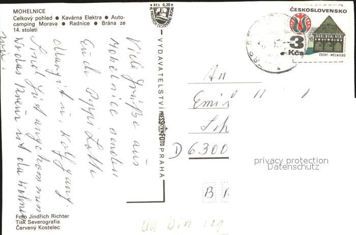 old postcard Mueglitz Mohelnice Czechia Celkovy pohled Kavarna Elektra postalisch gelaufen Erhaltung siehe scans [AndreD76]
