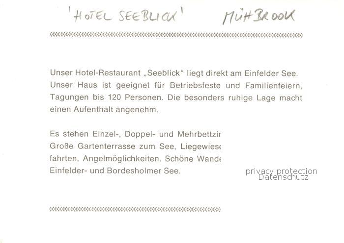 73542877 Muehbrook Hotel Restaurant Seeblick postalisch nicht gelaufen Werbekarte (keine Postkarte) Erhaltung siehe scans [FriedD77] KatCode: 11110001058108
