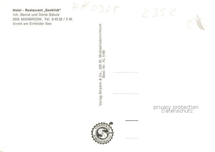 73662598 Muehbrook Hotel Restaurant Seeblick am Einfelder See postalisch nicht gelaufen Erhaltung siehe scans [FriedD77] KatCode: 11110001058108