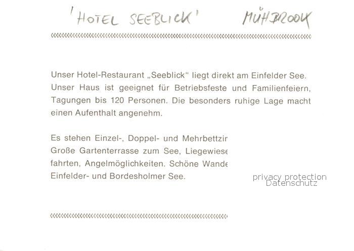 73542921 Muehbrook Hotel Seeblick postalisch nicht gelaufen Werbekarte (keine Postkarte) Erhaltung siehe scans [FriedD77] KatCode: 11110001058108