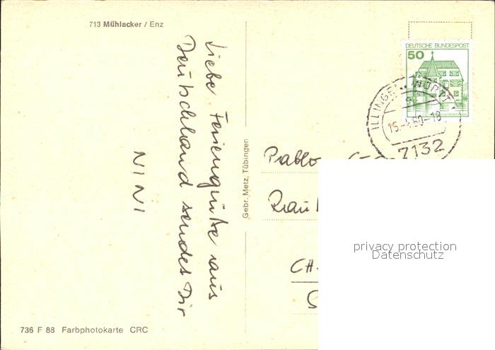 72557502 alte Postkarte Muehlacker Enz Stadtansicht postalisch gelaufen Erhaltung siehe scans [KathaD79] KatCode: 11110008236040