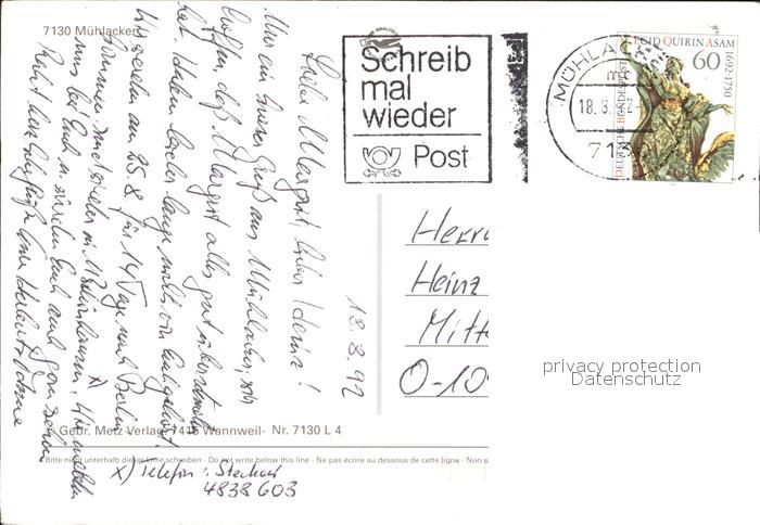 72450623 alte Postkarte Muehlacker Stadtplatz Brunnen postalisch gelaufen Erhaltung siehe scans KatCode: 11110008236040
