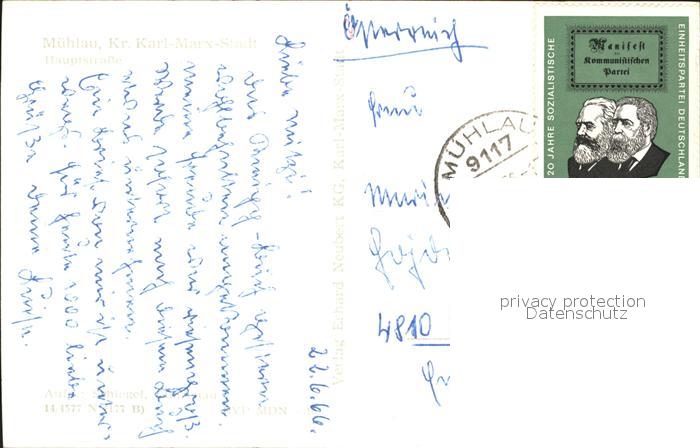 71906465 alte Postkarte Muehlau Chemnitz Hauptstrasse postalisch gelaufen Erhaltung siehe scans KatCode: 11110014182300