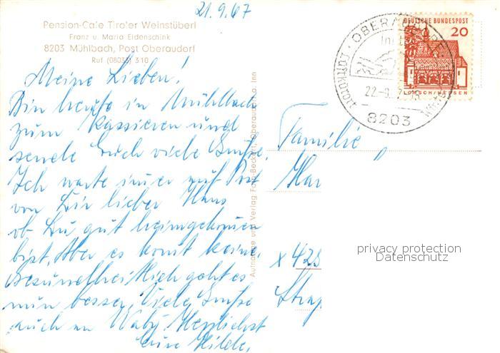 73787812 alte Postkarte Muehlbach Grosskarolinenfeld Pension Cafe Tiroler Weinstueberl Terrasse Kaisergebirge Gaststube Luegsteinsee postalisch gelaufen Erhaltung siehe scans [WerneD78] KatCode: 11110009187137
