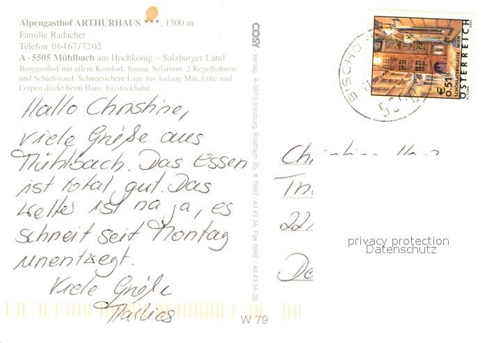 73230957 alte Postkarte Muehlbach Hochkoenig Alpengasthof Arthurhaus Winterpanorama Alpen postalisch gelaufen Erhaltung siehe scans [FriedD77] KatCode: 11390322050415