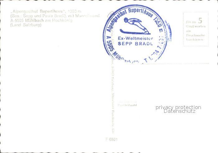 72011337 Muehlbach Hochkoenig Alpengasthof Rupertihaus postalisch nicht gelaufen Erhaltung siehe scans KatCode: 11390322050415