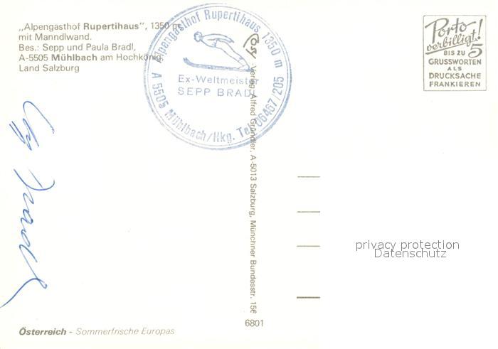 73219753 Muehlbach Hochkoenig Alpengasthof Rupertihaus mit Mandlwand postalisch nicht gelaufen Erhaltung siehe scans [FriedD77] KatCode: 11390322050415