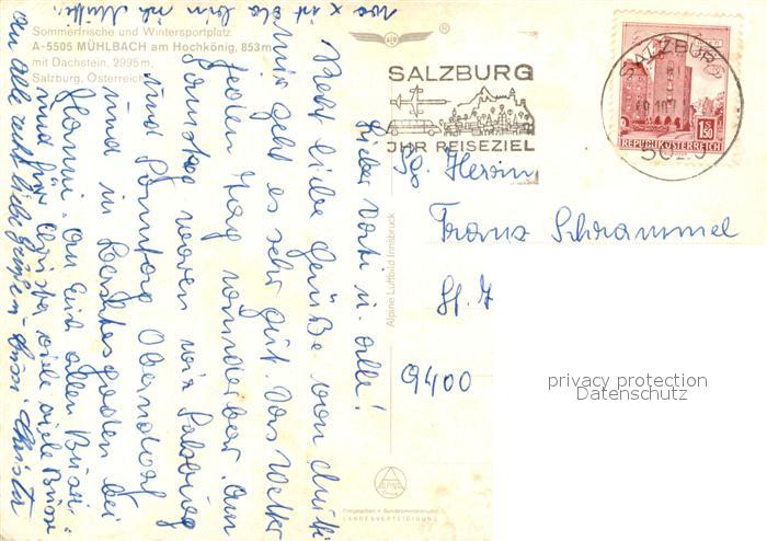 73175174 alte Postkarte Muehlbach Hochkoenig Alpenpanorama Fliegeraufnahme postalisch gelaufen Erhaltung siehe scans [FriedD77] KatCode: 11390322050415