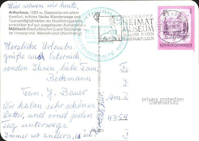 72179762 alte Postkarte Muehlbach Hochkoenig Arthurhaus postalisch gelaufen Erhaltung siehe scans KatCode: 11390322050415