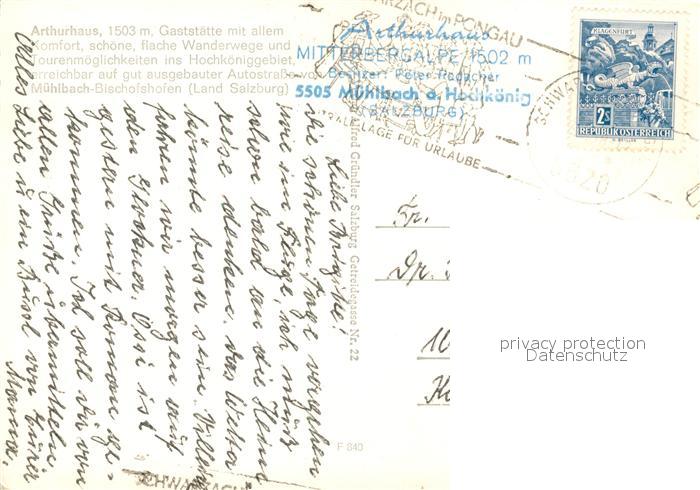73481032 alte Postkarte Muehlbach Hochkoenig Arthurhaus postalisch gelaufen Erhaltung siehe scans [FriedD77] KatCode: 11390322050415