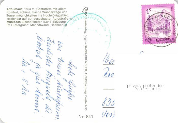 72654222 alte Postkarte Muehlbach Hochkoenig Arthurhaus postalisch gelaufen Erhaltung siehe scans [WerneD78] KatCode: 11390322050415