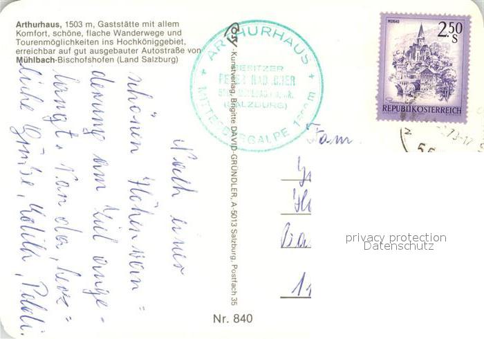 73219784 alte Postkarte Muehlbach Hochkoenig Arthurhaus Berggaststaette Berchtesgadener Alpen postalisch gelaufen Erhaltung siehe scans [FriedD77] KatCode: 11390322050415