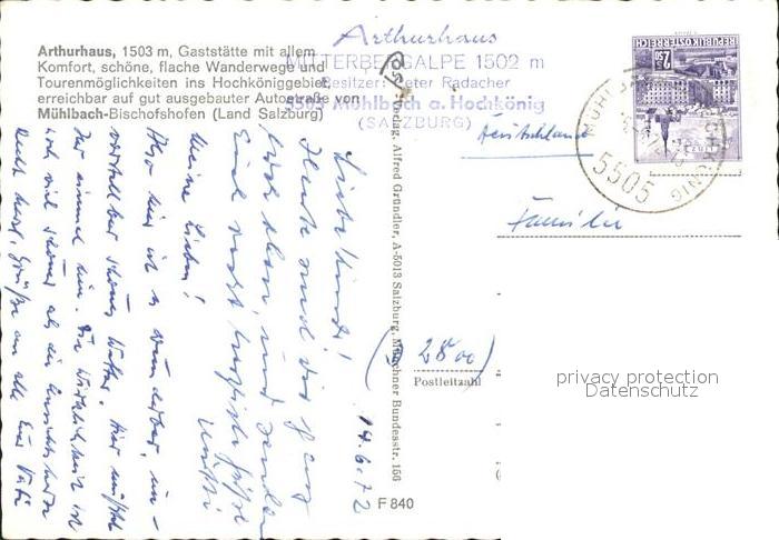 11923314 alte Postkarte Muehlbach Hochkoenig Arthurhaus Gaststaette postalisch gelaufen Erhaltung siehe scans KatCode: 11390322050415