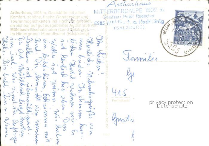 71908741 alte Postkarte Muehlbach Hochkoenig Arthurhaus Gaststaette Manndlwand postalisch gelaufen Erhaltung siehe scans KatCode: 11390322050415