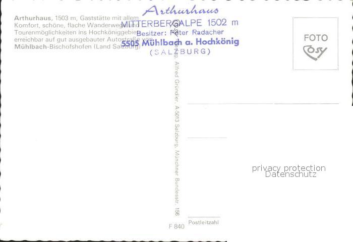 72016820 Muehlbach Hochkoenig Arthurhaus Restaurant postalisch nicht gelaufen Erhaltung siehe scans KatCode: 11390322050415
