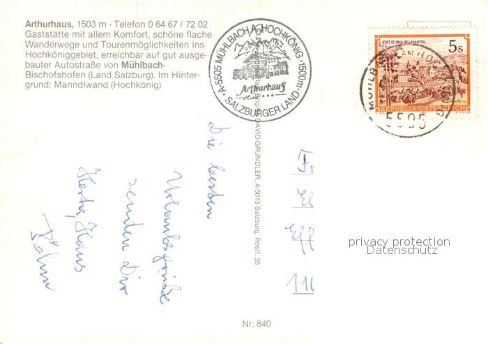 73481037 alte Postkarte Muehlbach Hochkoenig Arthurhaus postalisch gelaufen Erhaltung siehe scans [FriedD77] KatCode: 11390322050415