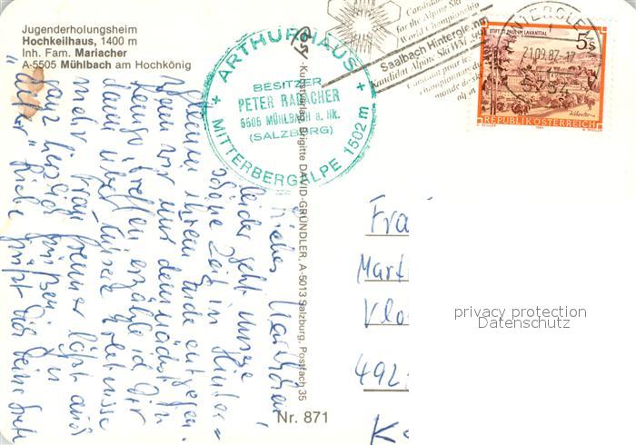 73340203 alte Postkarte Muehlbach Hochkoenig Jugenderholungsheim Hochkeilhaus postalisch gelaufen Erhaltung siehe scans [LiesaD40] KatCode: 11390322050415
