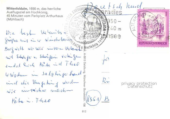 72619620 alte Postkarte Muehlbach Hochkoenig Mittenfeldalm Ausflugsziel am Hochkoenig Alpenpanorama postalisch gelaufen Erhaltung siehe scans [FriedD77] KatCode: 11390322050415