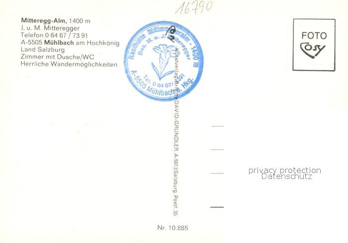 73367090 Muehlbach Hochkoenig Mitteregg Alm postalisch nicht gelaufen Erhaltung siehe scans [WerneD78] KatCode: 11390322050415