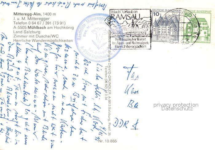 73683032 alte Postkarte Muehlbach Hochkoenig Mitteregg Alm postalisch gelaufen Erhaltung siehe scans [WerneD78] KatCode: 11390322050415
