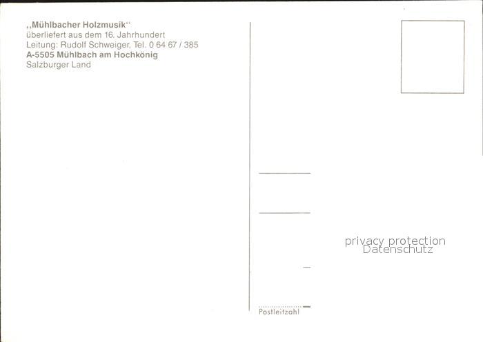 72426335 Muehlbach Hochkoenig Muehlbacher Holzmusik Trachten postalisch nicht gelaufen Erhaltung siehe scans KatCode: 11390322050415