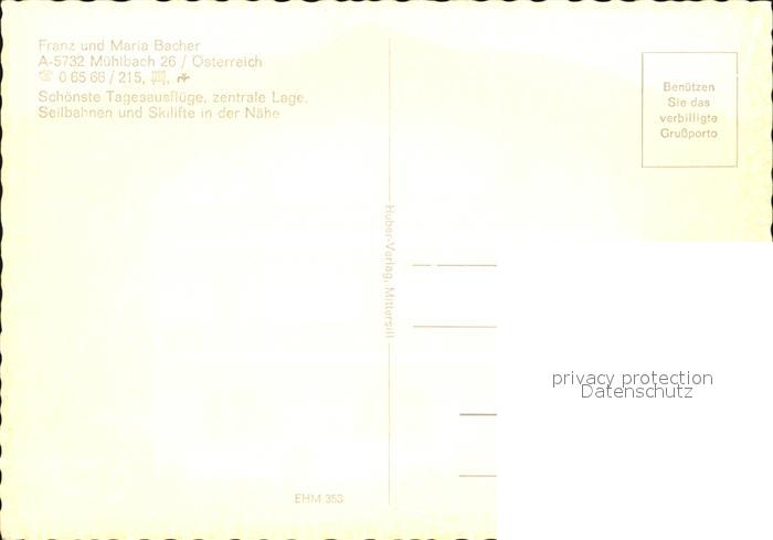 72437327 Muehlbach Hochkoenig Pension Franz und Maria Bacher Tischlerei postalisch nicht gelaufen Erhaltung siehe scans KatCode: 11390322050415