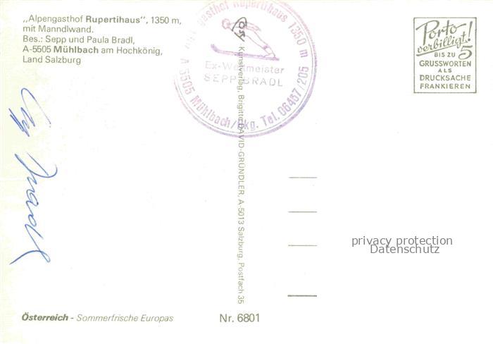 74087797 Muehlbach Hochkoenig Pinzgau-Pongau AT Alpengasthof Rupertihaus postalisch nicht gelaufen Erhaltung siehe scans [WerneD78] KatCode: 11390322050415